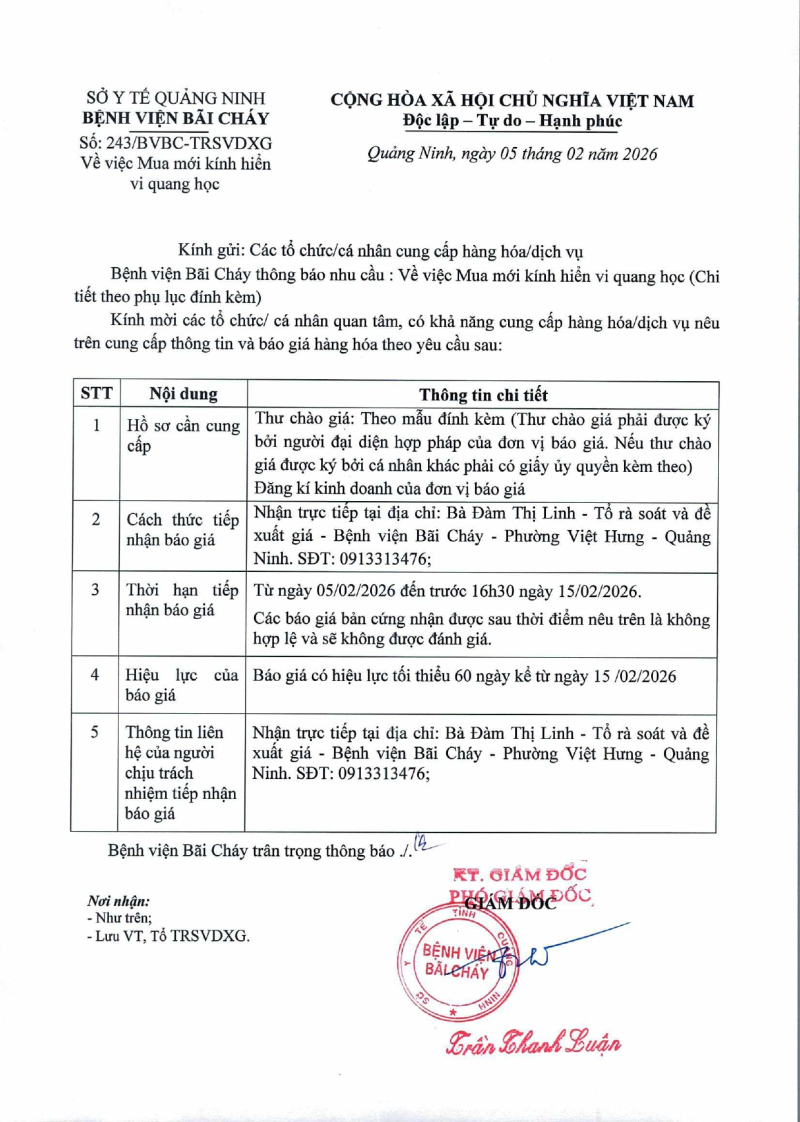 Thông báo số 243 về nhu cầu mua mới kính hiển vi quang học