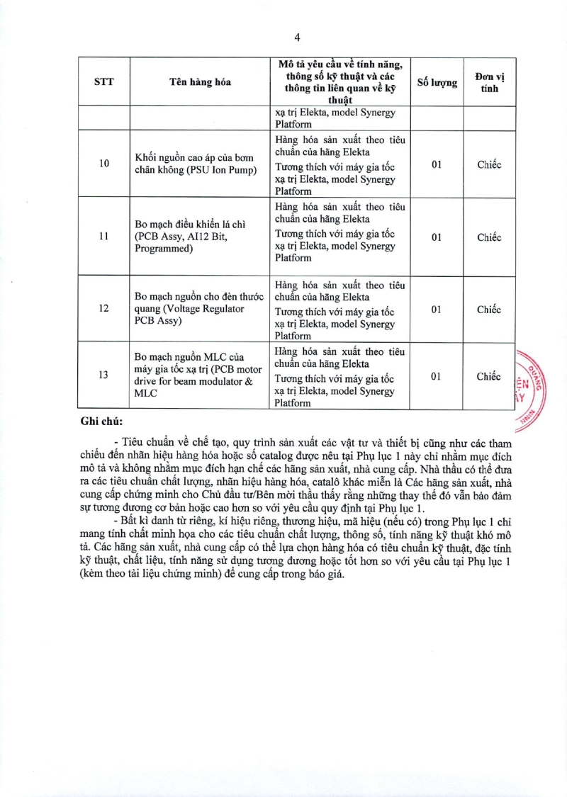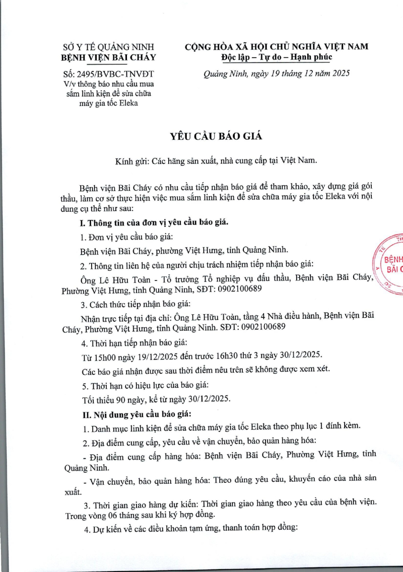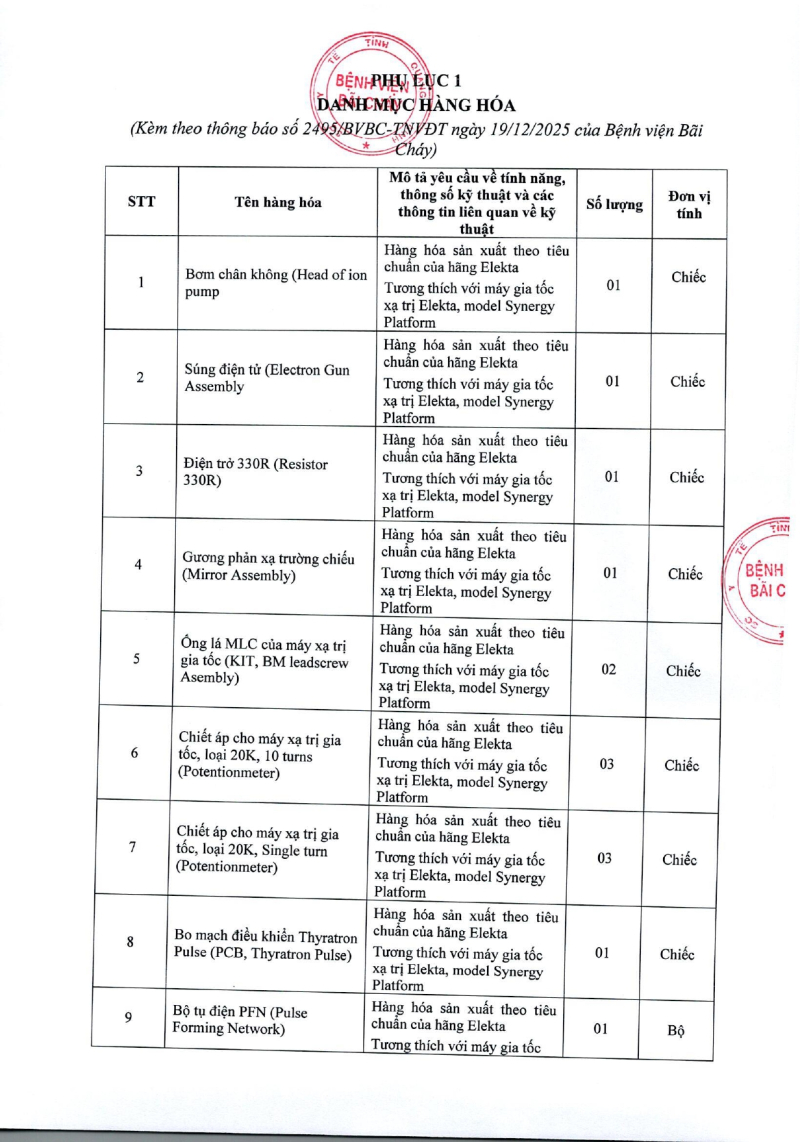 Thông báo số 2495 về nhu cầu mua sắm linh kiện để sửa chữa máy gia tốc Eleka