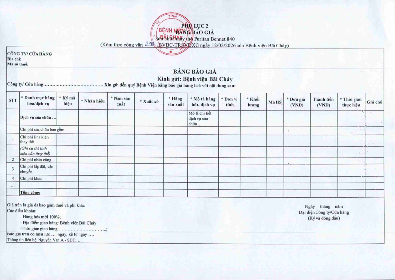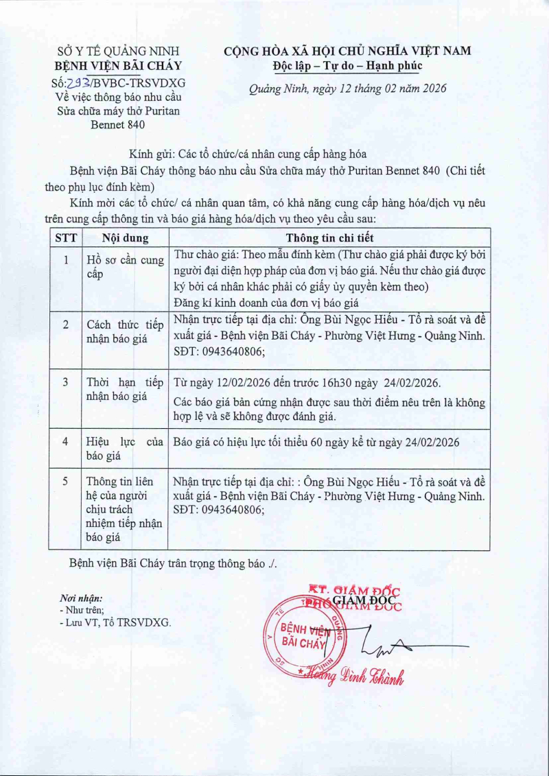 Thông báo số 274 về nhu cầu sửa chữa máy truyền dịch