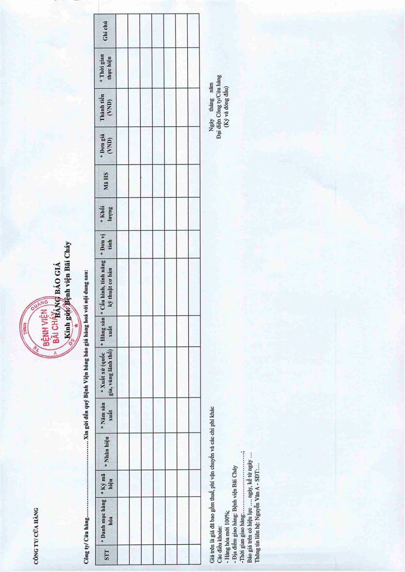 Bảng giá dịch vụ