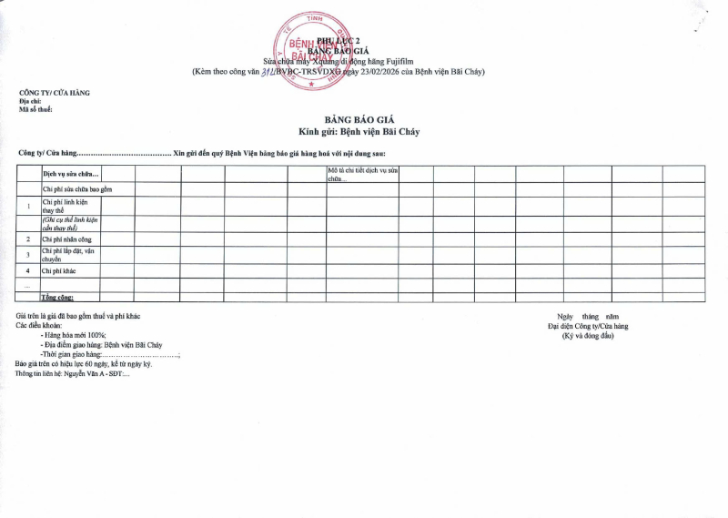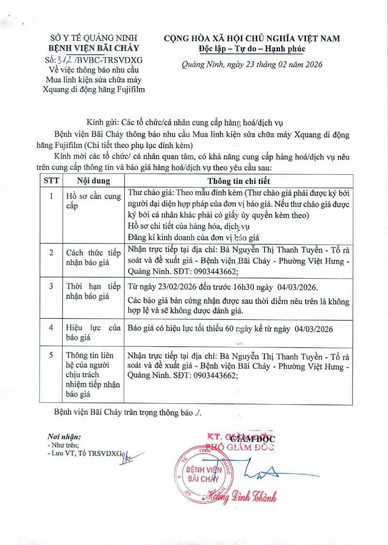 Thông báo số 312 về nhu cầu mua linh kiện sửa chữa máy Xquang di động hãng Fujifilm
