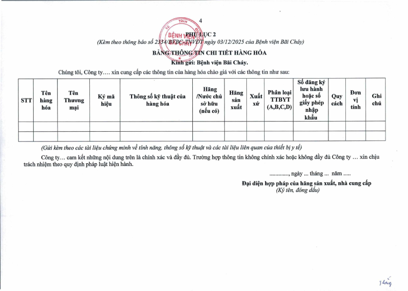 Thông báo số 2527 về nhu cầu mua sắm vật tư y tế can thiệp cho khoa chẩn đoán hình ảnh năm 2026 -2027