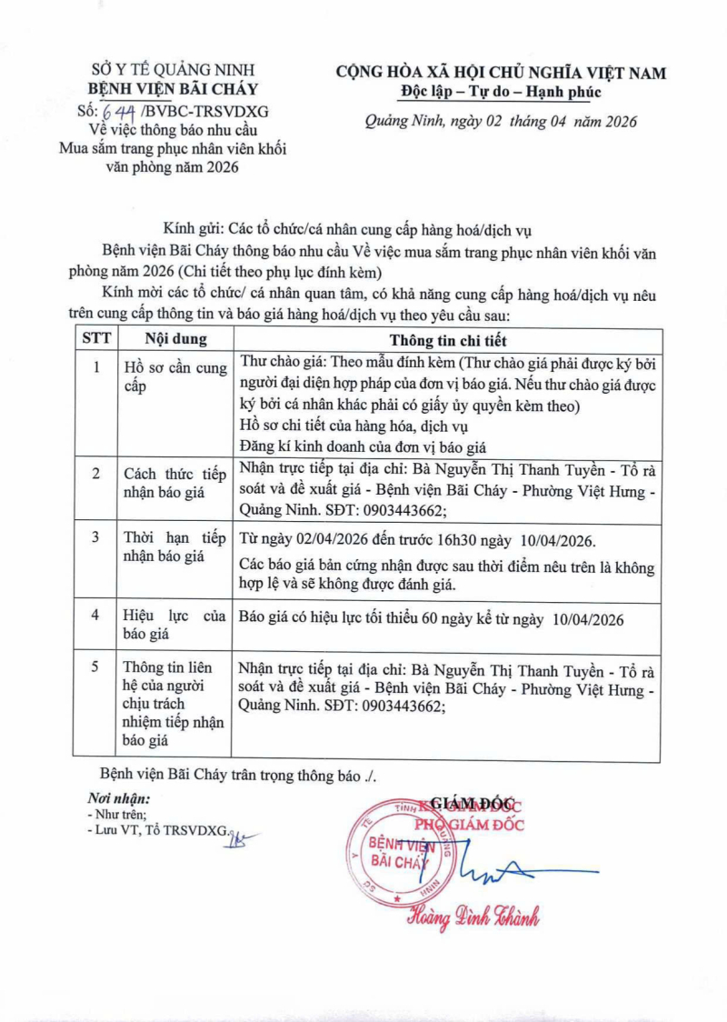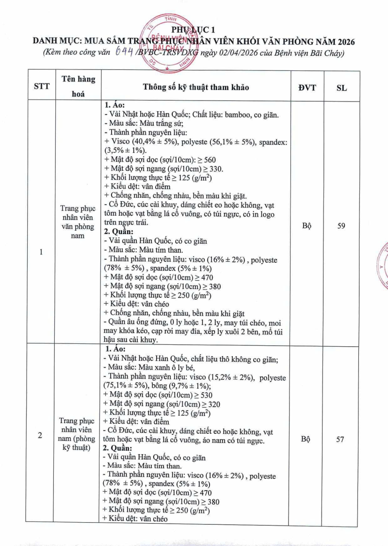 Thông báo số 644 về nhu cầu mua sắm trang phục nhân viên khối văn phòng năm 2026