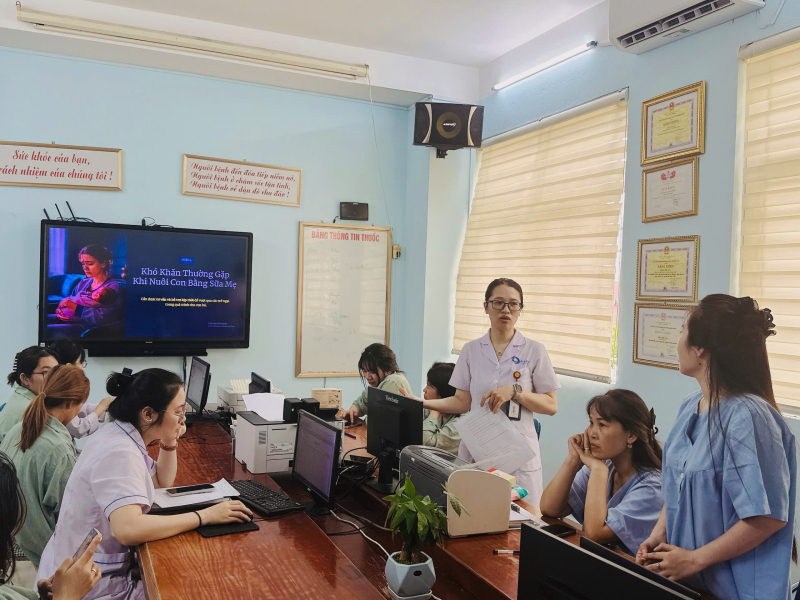 Ngày 02/04/2026, tại Khoa Phụ sản – Bệnh viện Bãi Cháy, buổi tư vấn chuyên đề Hướng dẫn nuôi con bằng sữa mẹ đã được tổ chức với sự phối hợp chặt chẽ giữa Khoa Phụ sản và Tổ Công tác xã hội, thu hút đông đảo sản phụ đang điều trị tham gia.