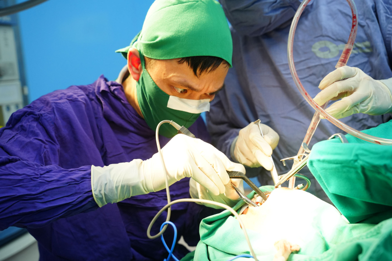 Ca phẫu thuật có sự phối hợp nhịp nhàng của các chuyên khoa ung bướu 2 – Tai mũi họng – gây mê hồi sức. Ekip của BSCKI Nguyễn Văn Bảo – Phó Trưởng Khoa Tai mũi họng, BSCKI Doãn Chiến Thắng – Phụ trách vị trí Phó Trưởng Khoa Ung bướu 2  đã tiến hành phẫu thuật cắt toàn bộ amidan trái kèm khối u, đồng thời cắt mở rộng một phần trụ trước, trụ sau và một phần khẩu cái mềm đảm bảo diện cắt an toàn, âm tính về mặt ung thư, hạn chế tối đa nguy cơ tái phát. Ca phẫu thuật diễn ra thuận lợi, kiểm soát tốt chảy máu, kiểm soát tốt chảy máu và đảm bảo nguyên tắc điều trị ung thư, bảo tồn chức năng vùng họng miệng cho người bệnh. Sau phẫu thuật 5 ngày, sức khỏe bệnh nhân hồi phục tốt và được xuất viện.