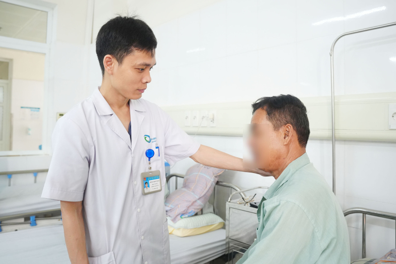 BSCKI Doãn Chiến Thắng – Phụ trách vị trí Phó Trưởng Khoa Ung bướu 2 thăm khám cho bệnh nhân sau phẫu thuật