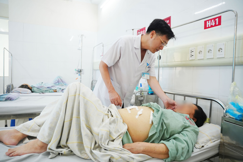 BS Nguyễn Văn Dũng – Trưởng Khoa Ung bướu 1, Bệnh viện Bãi Cháy thăm khám cho bệnh nhân sau phẫu thuật nội soi