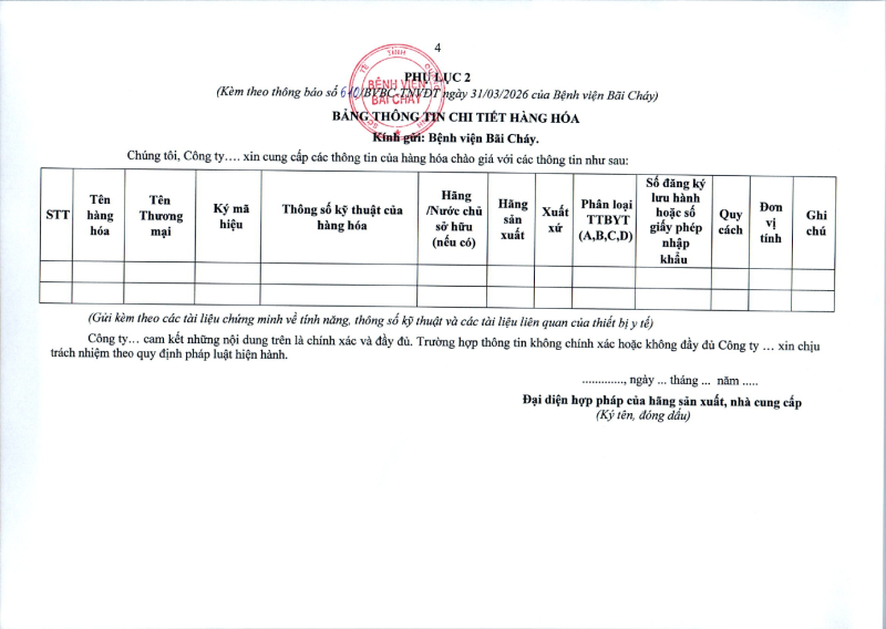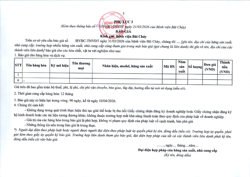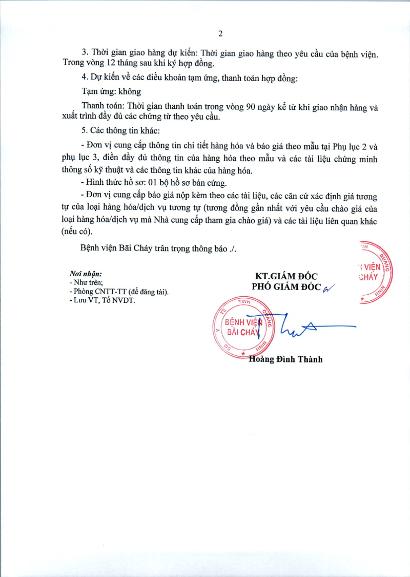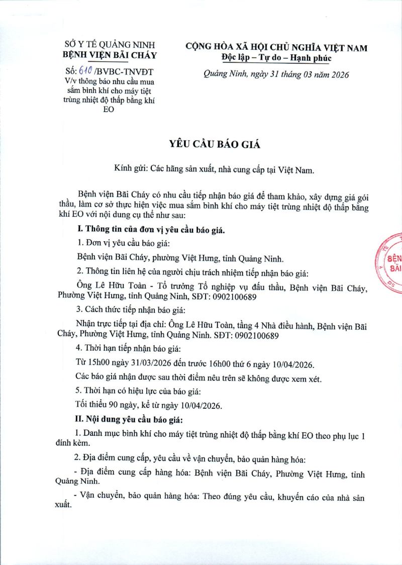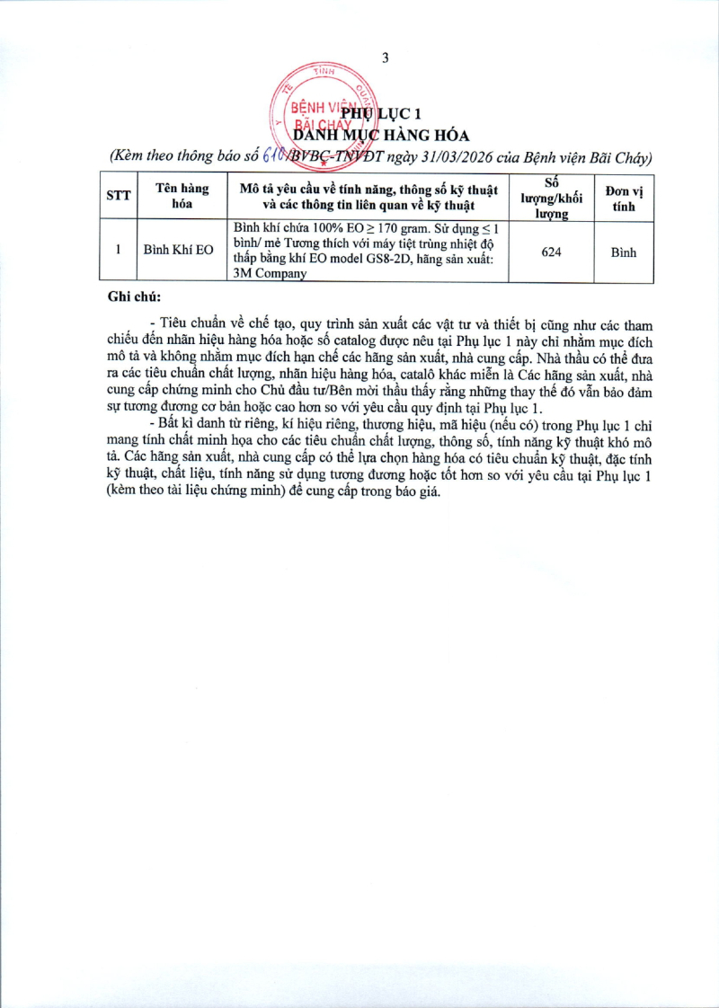 Thông báo 610 nhu cầu mua sắm bình khí cho máy tiệt trùng nhiệt độ thấp bằng khí EO