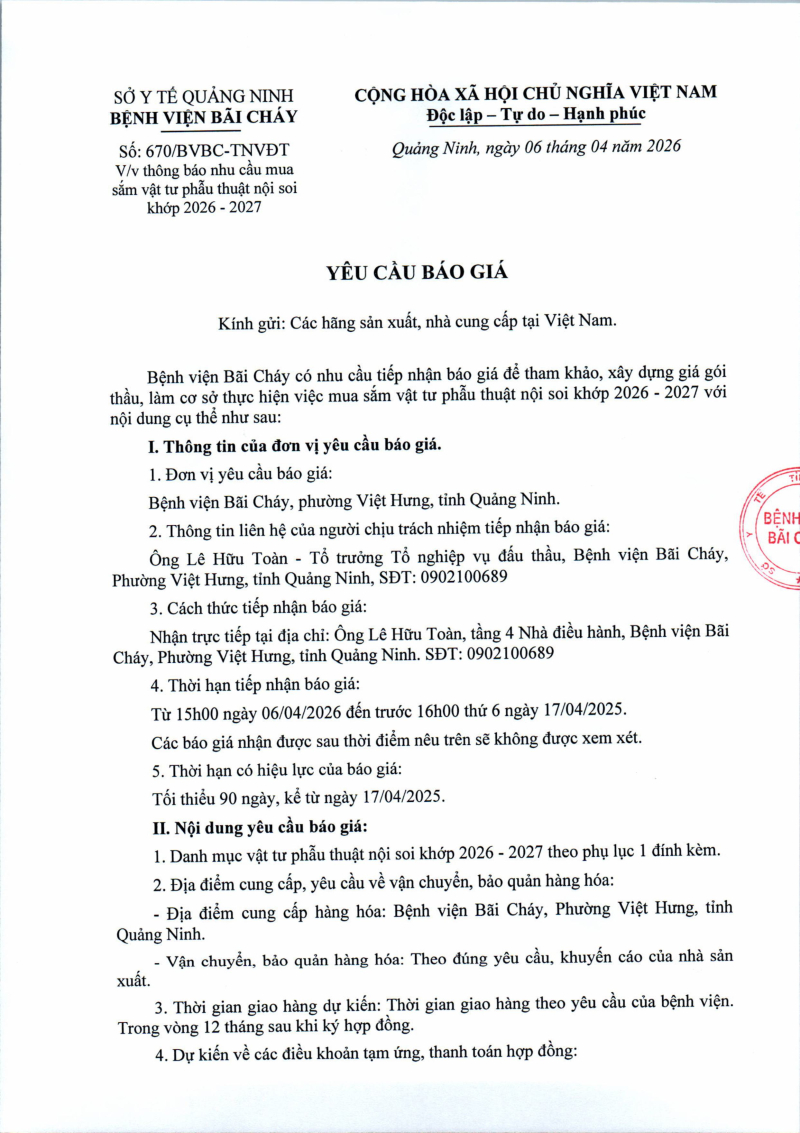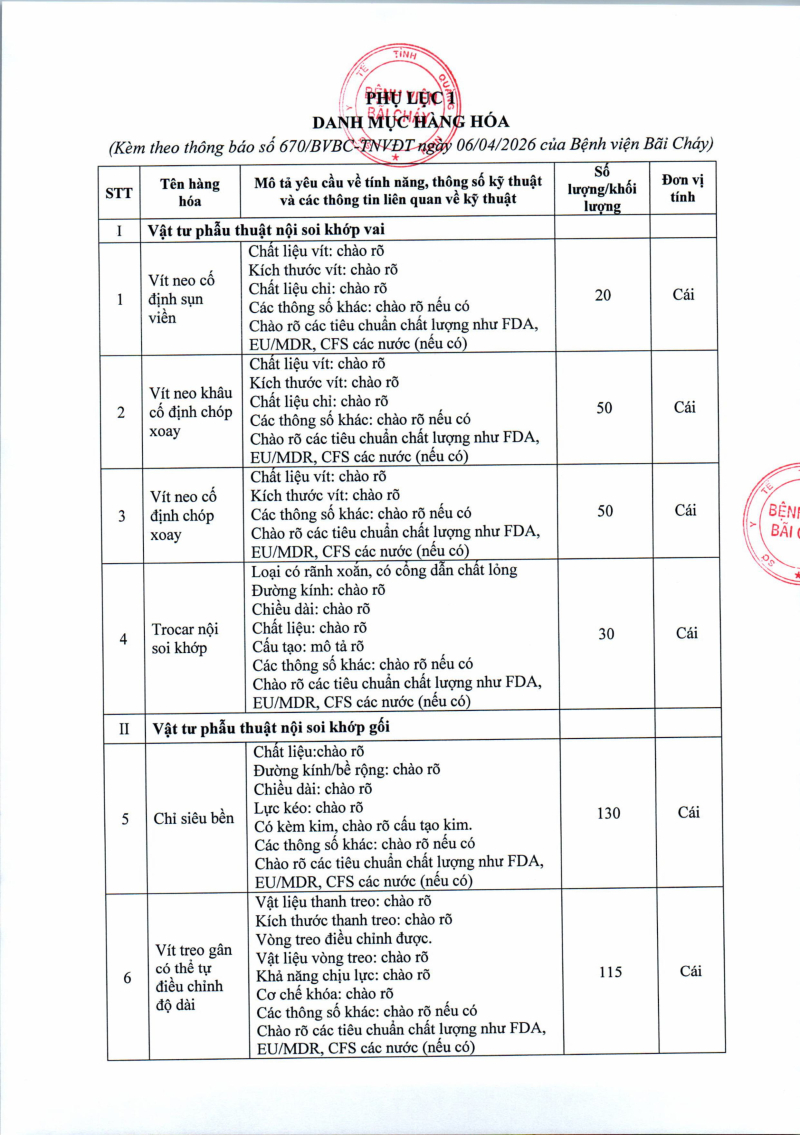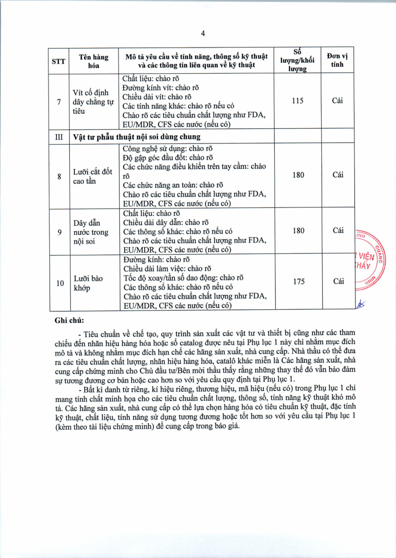 Thông báo 670 nhu cầu mua sắm vật tư phẫu thuật nội soi Hôm nay 02:32 Thông báo 670 nhu cầu mua sắm vật tư phẫu thuật nội soi