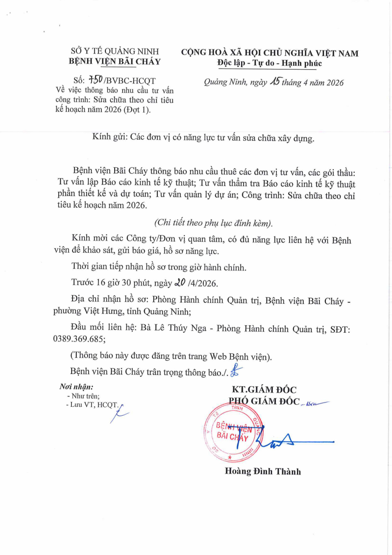 Thông báo số 747 về nhu cầu mua sắm vật tự phẫu thuật chuyên khoa Mắt 2026 - 2027