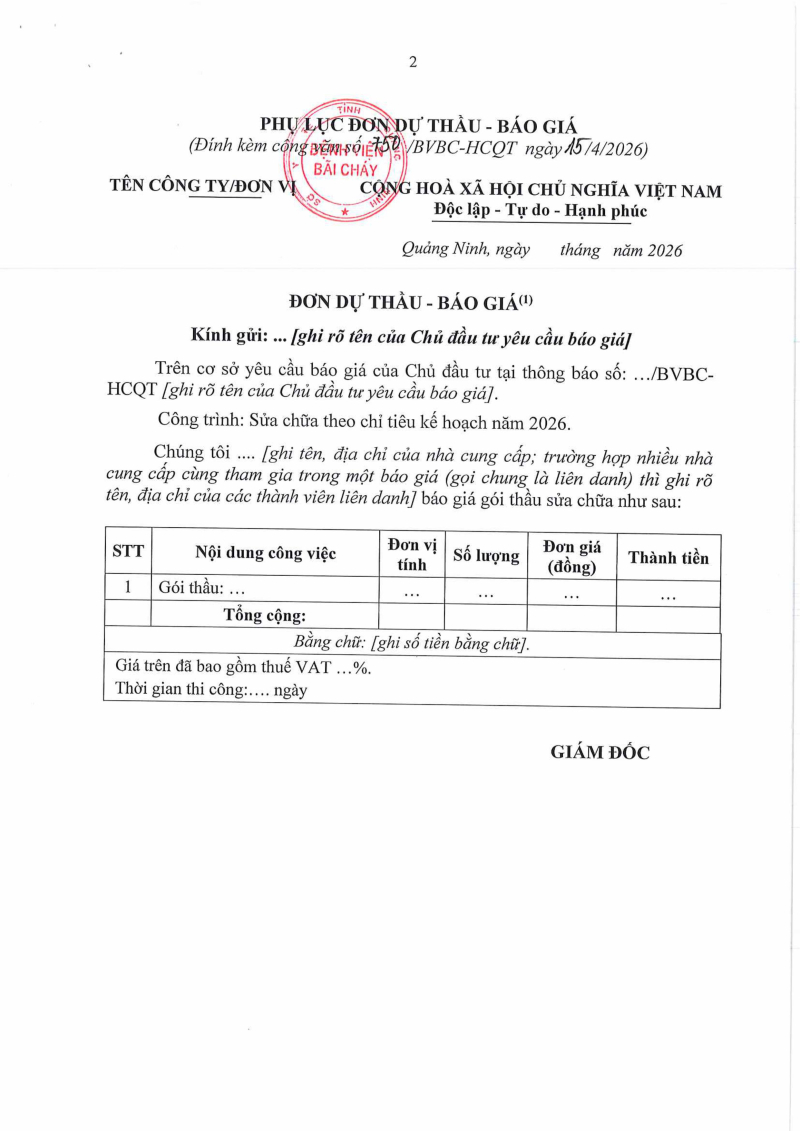 Sơ đồ tổ chức Bệnh viện Bãi Cháy