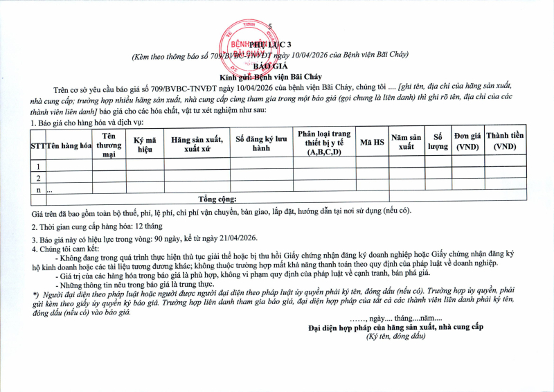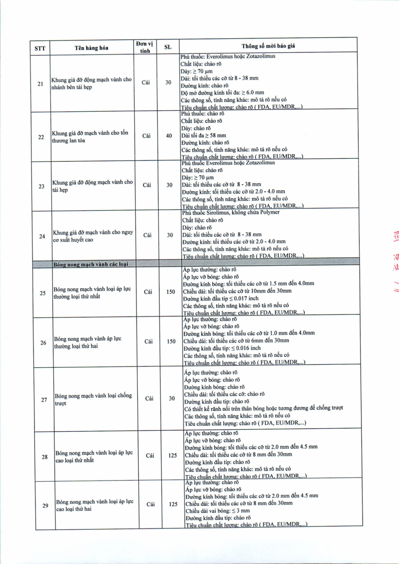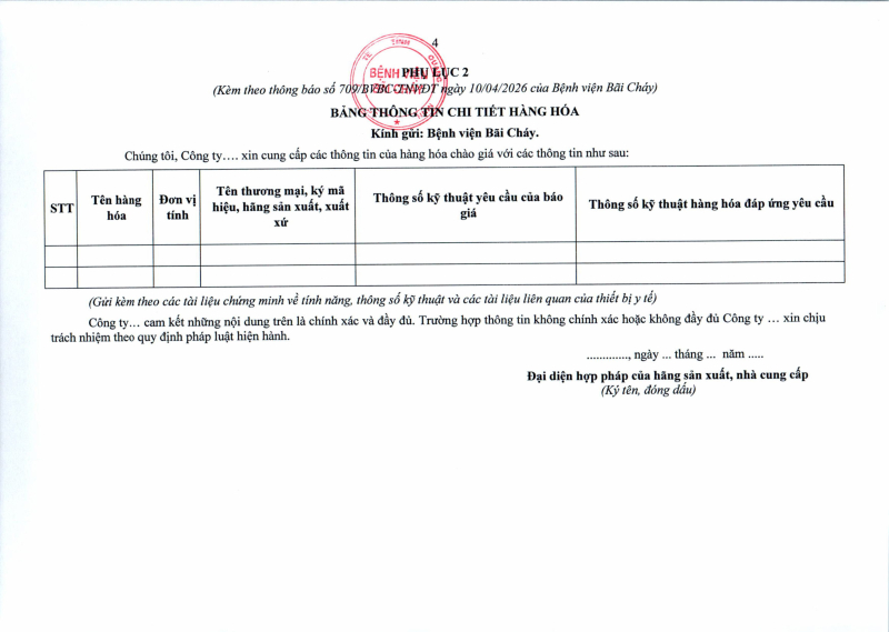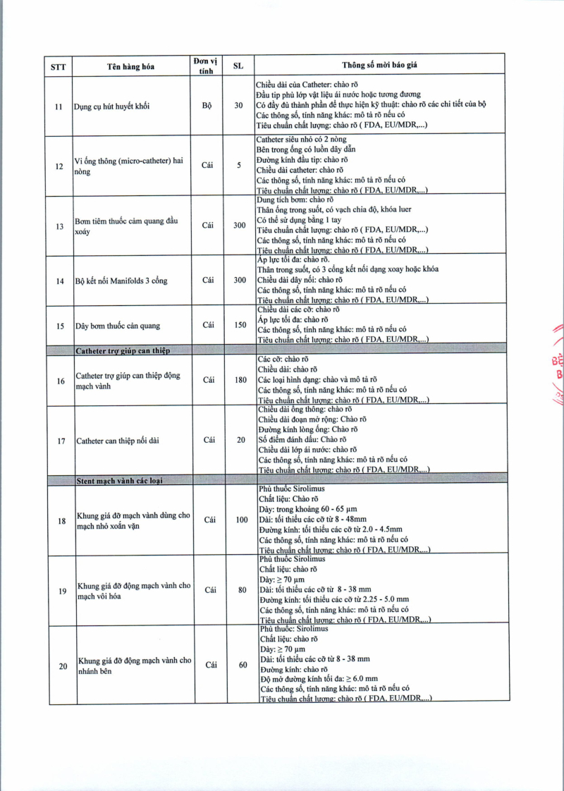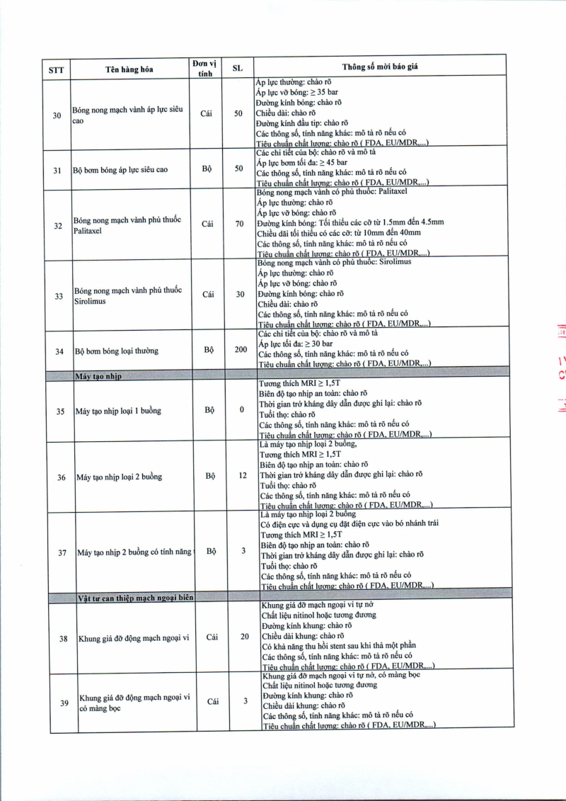 Thông báo số 709 về nhu cầu mua sắm vật tư can thiệp mạch, xquang can thiệp 2026,2027