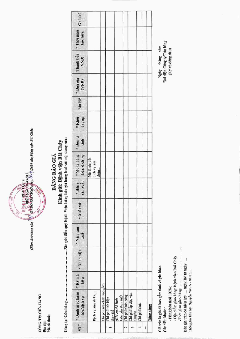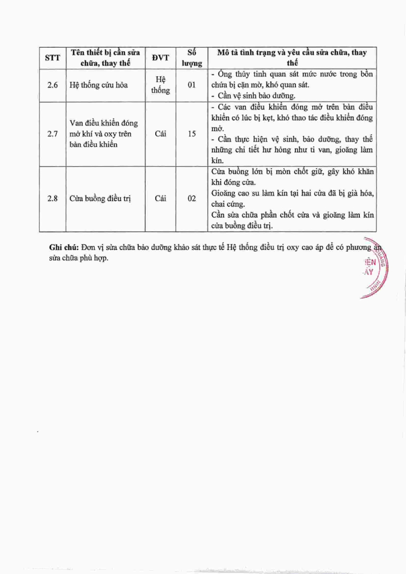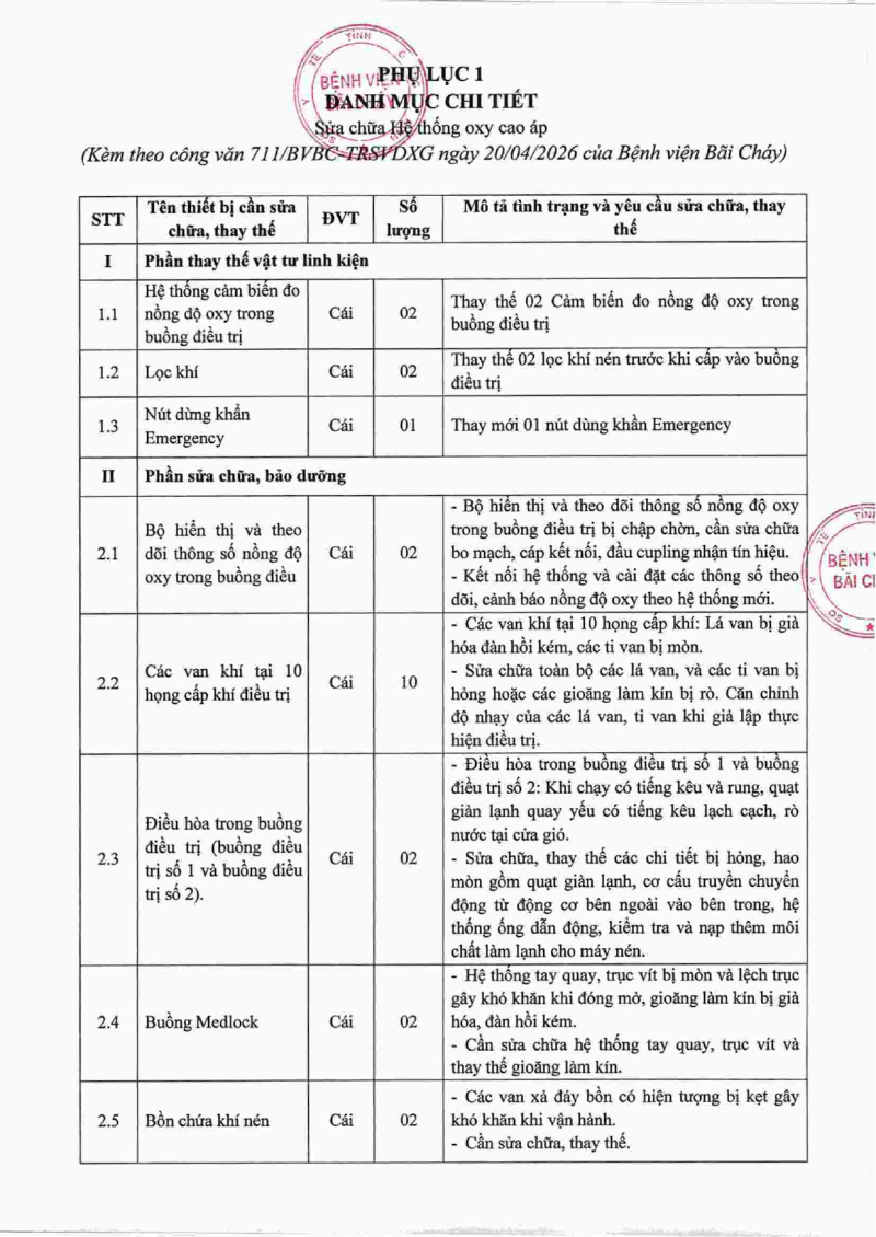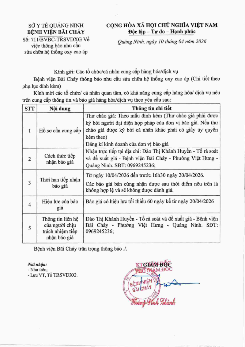 Thông báo số 711 về nhu cầu sửa chữa ô xy cao áp