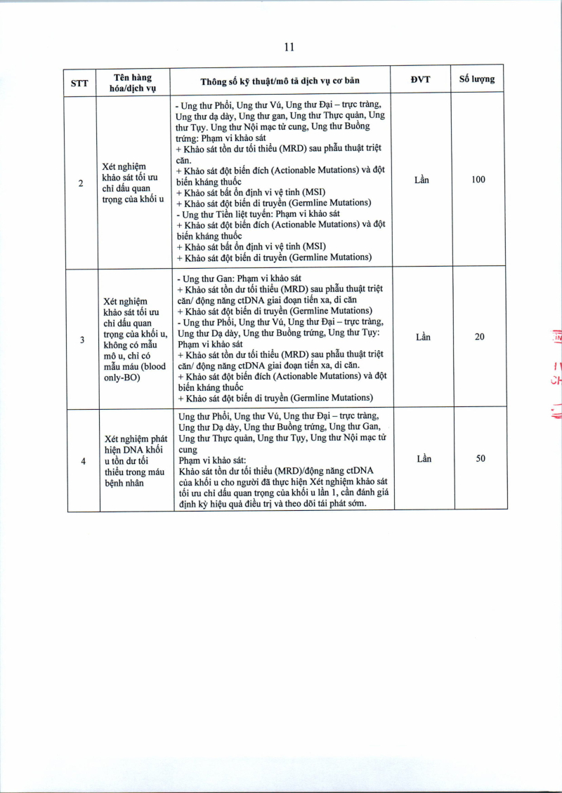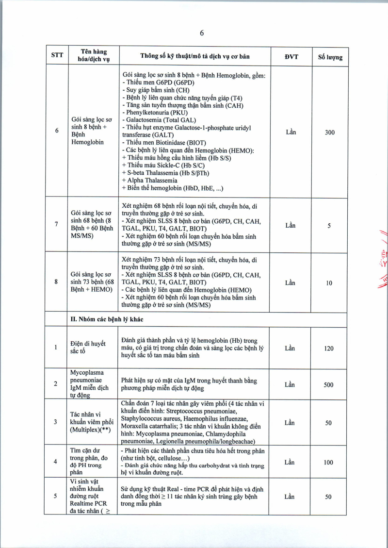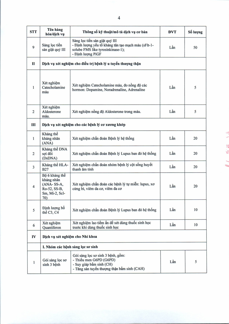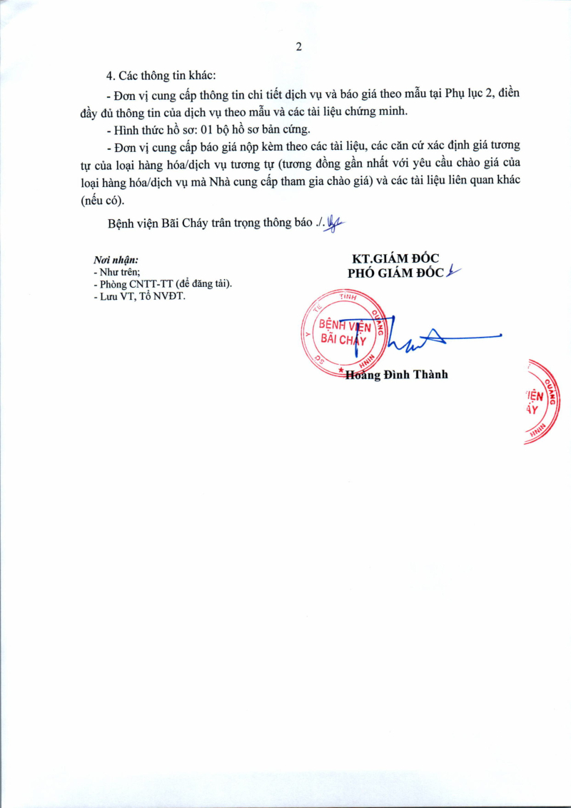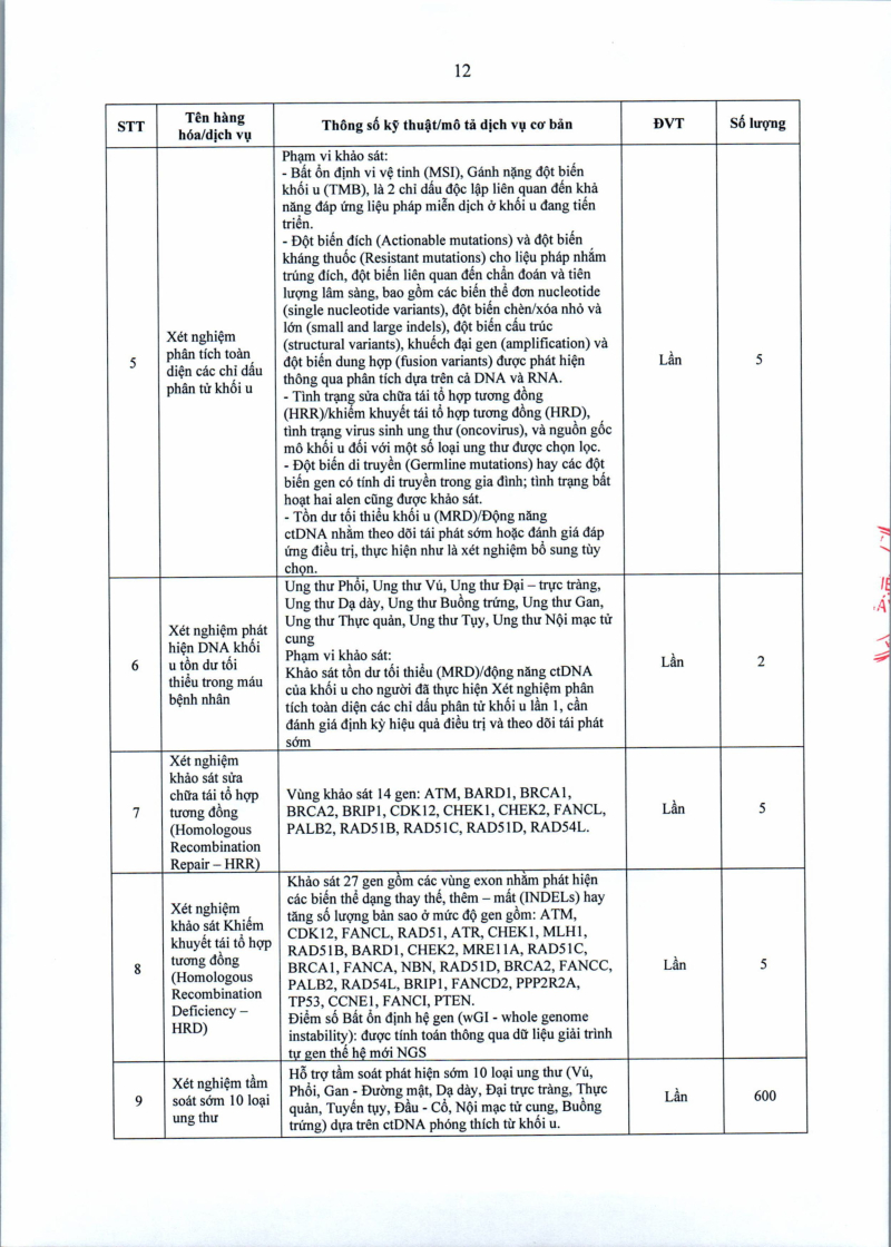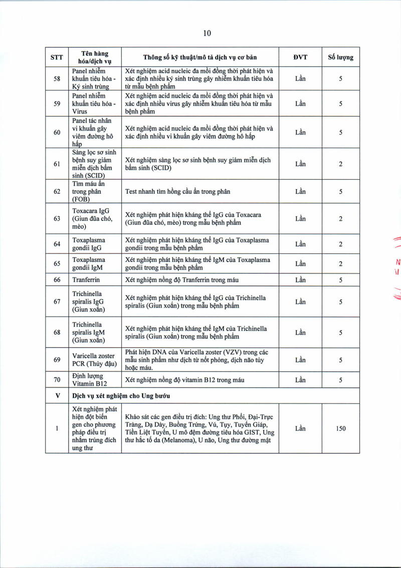 Thông báo số 807 về nhu cầu mua sắm dịch vụ xét nghiệm phục vụ công tác chuyên môn Tại bệnh viện bãi cháy năm 2026, 2027